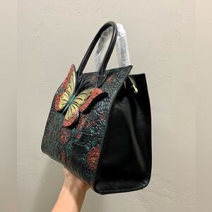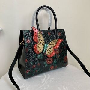 Hand Painted Genuine Leather Floral Embossed with 3D Butterfly Handbag
