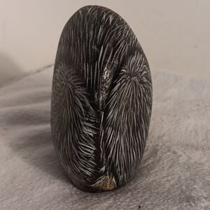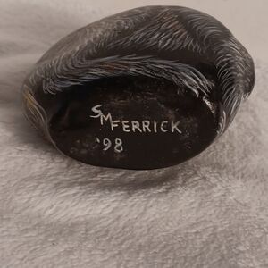 Charming vintage '98' hand-painted stone featuring a raccoon design. Measures approximately: 4-1/2" tall x 4-3/4" wide . Perfect for home decor or as a unique gift.