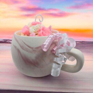 For lovers of soft light, sweet scent ✦ sacred self-care—this enchanting candle is hand-poured into a blush-pink marbled ceramic mug.