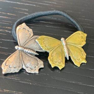 Hand-Pressed Butterfly Hair Tie – Vintage Metal Ponytail Holder on Elastic