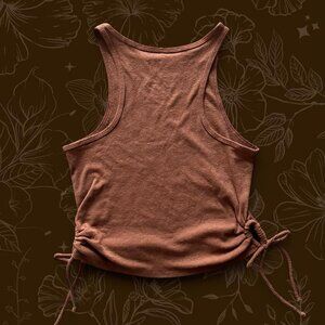 Bring artsy vintage vibes to your wardrobe with this unique fig-print cami designed + printed by me! This piece started as a secondhand brown tank top and was reimagined with a hand-printed black fig illustration, making it truly one of a kind. Perfect for layering with chokers and necklaces (as styled here) or pairing with your favorite Y2K jeans, skirts, or cargo pants. Also features adjustable side ties on each side ❤️