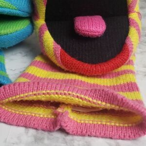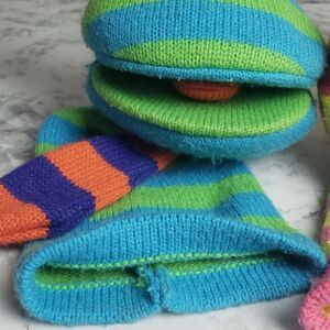 Both in good condition. slight piling. The caterpillar guy's glasses need mending. Part of it ripped in half as shown in photo.