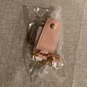 New. Hand sanitizer charm keychain. Dusty pink PU leather. Comes with the bottle. Approximately 6" tall. *Reasonable* offers only please.