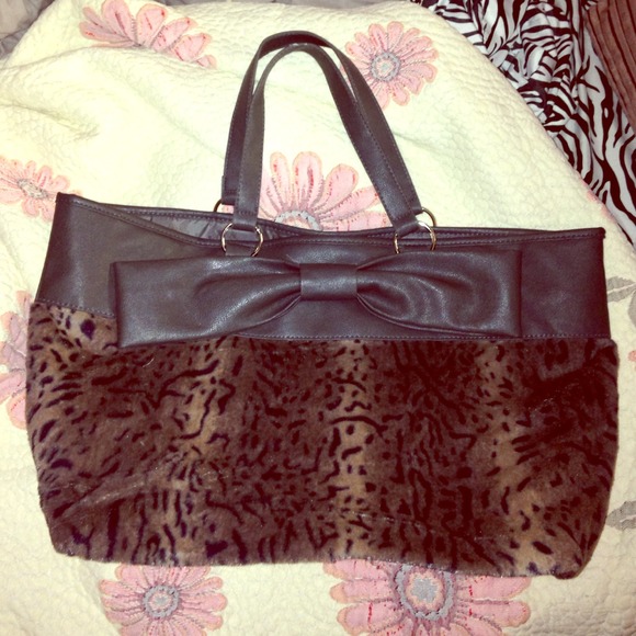 Handbag with animal print (very soft). It is very spacey and has a cute bow on the front. I'm just not the type of girl to carry around a bag!