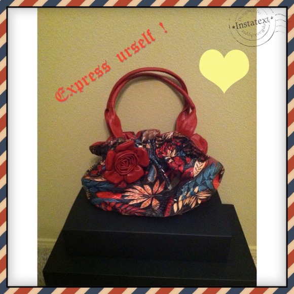 Bueno handbag in a hot red with fun print and big flower . Brand new!!