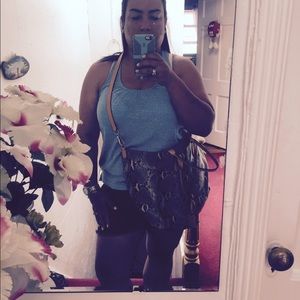 The colors are cream , light brown snake skin light color handle gray lining inside