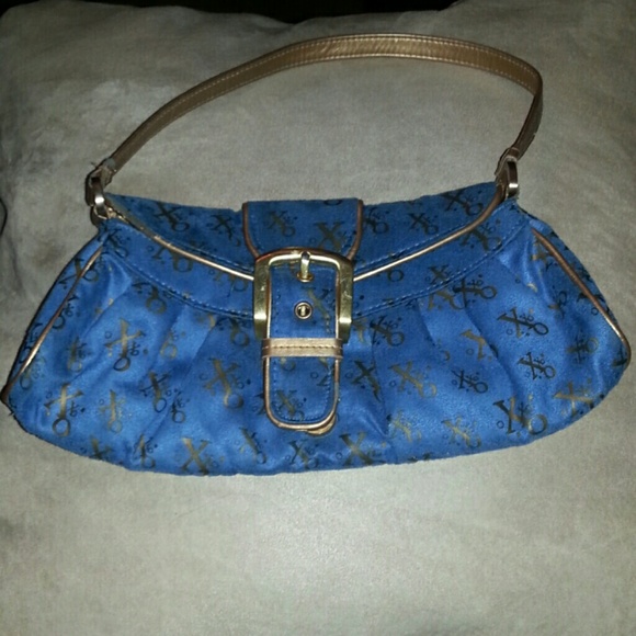 Blue suede and gold xoxo handbbag