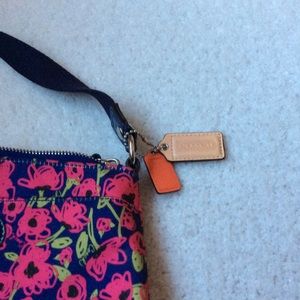 Coach small bag with pattern of fuchsia flowers . Almost new, great condition.