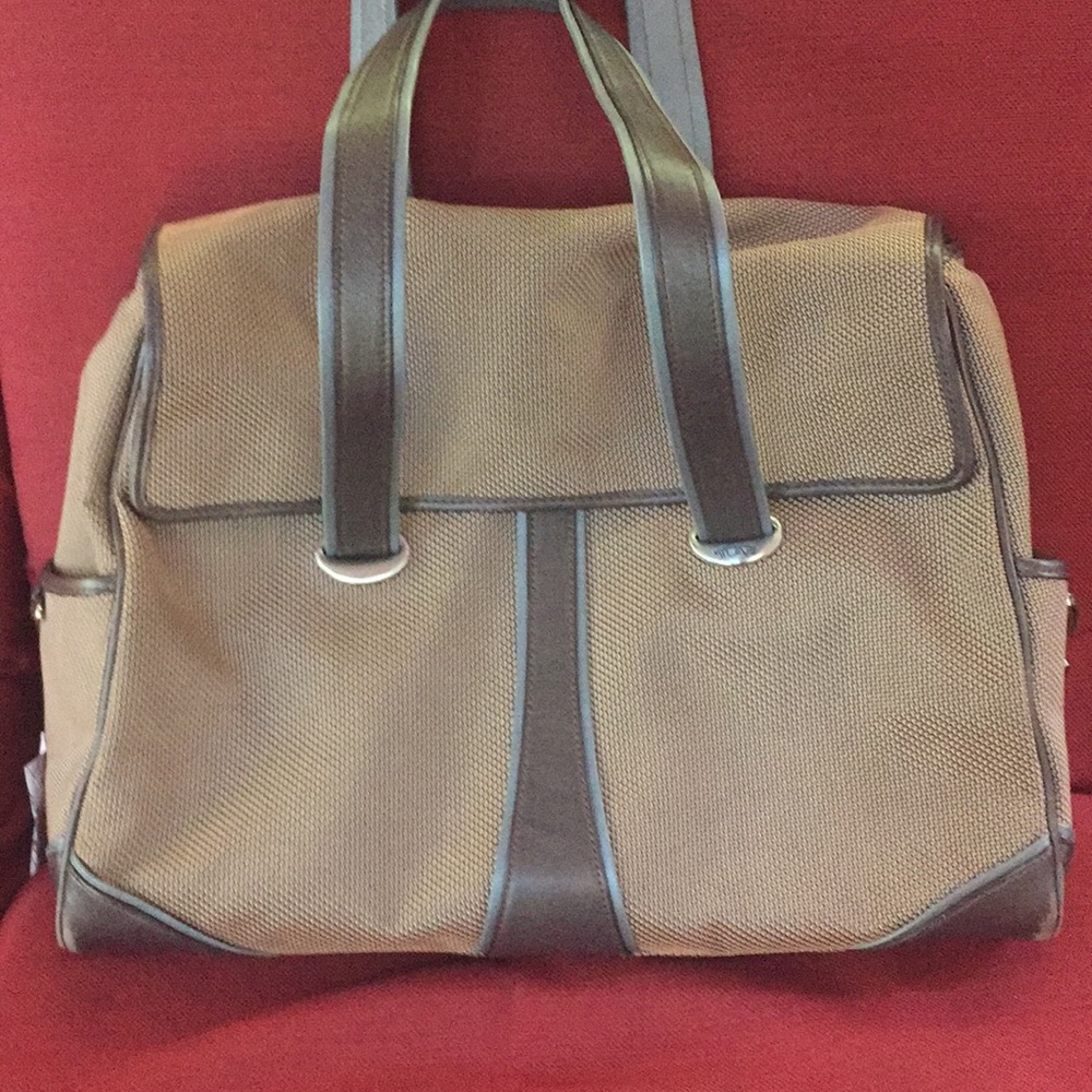 TUMI handbag brown color, a lots of space inside including special space for laptop or iPad, normal wear and tare. Original price was $ 600.