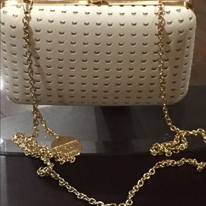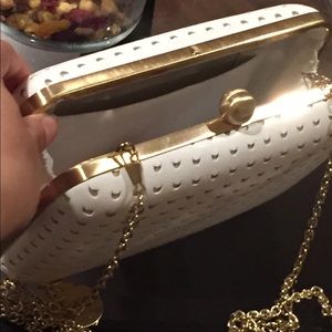 Penelope Cruz clutchPatterned white clutch with click clack closure from Penelope and Monica Cruz 2017 Spring collection