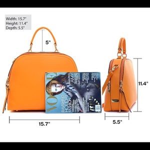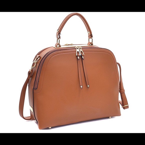 Women's Classic Buffalo PU Leather Domed Satchel Handbag, Work Bag, & Shoulder Bag with Shoulder Strap. NWT and comes with dust cover bag.