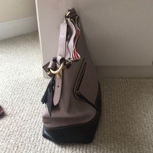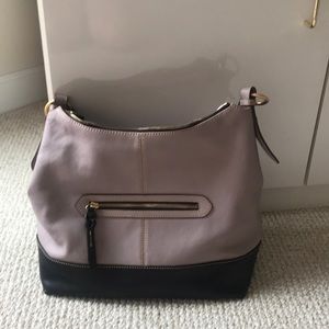 Dooney and Bourke, leather, shoulder, luke new, blush tint of purple, brown trim, comes with matching wallet