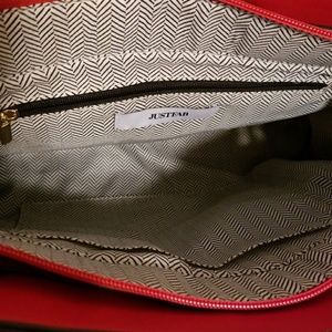 This red tote is brand new. has never been used. It's big enough carry important everyday items such as (large wallet, water bottle, ipad) very cute!
