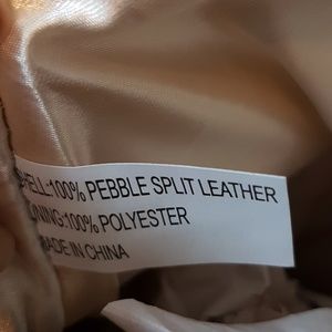 Cream colored Satchel style bag. 4 slip Pockets one large inside zippered pocket one small inside zippered pocket. Place for everything period comes with additional shoulder strap. Also comes with a gold fabric storage bag. Leather shell. And yes that is a pocket watch that you see hanging on the outside of the bag. Never used. Still has wrapping on handles.