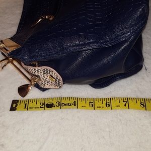Handbag has shoulder strap and handles with faux snakeskin and lots of room (see pics for dimensions)