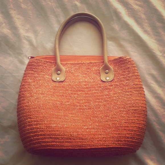 Straw orange handbag with inside pocket for phone, cosmetics, etc.