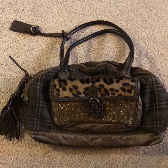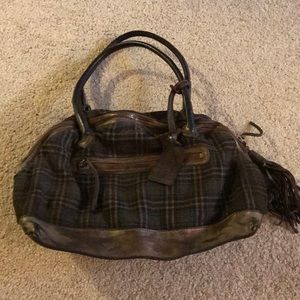 Made in Italy Caterina Lucchi Leather and plaid bag, used maybe 3 times. Excellent condition. Measurements from bottom of bag is approximately 15” L 7 1/2” W