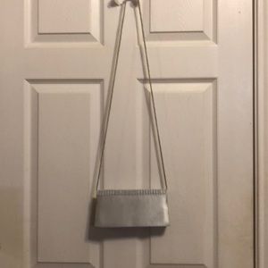 Clutch after five with front snap for closure, long tiny rope attached to clutch. Small inside pocket. Used once tag in bag.size 8.5 inches x 4.5 inches.