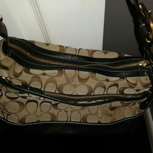 Great Condition. Has 2 pockets on the front that lock & 1 zip pocket on the back the length of the handbag.