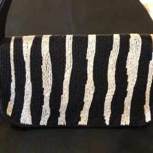 Black and white beaded shoulder bag. Satin lined with inside pocket. Dust cover included.