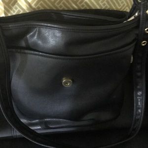 Black leather handbag with adjustable straps and with a pocket inside and outside brand new never used