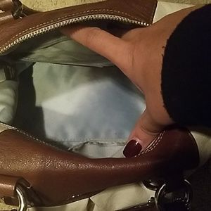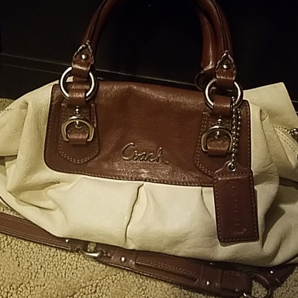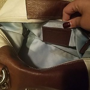Authentic Coach handbag. Two color. Its really pretty. Well used but exterior looks good still. Had bought it for more than $300 couple years ago.