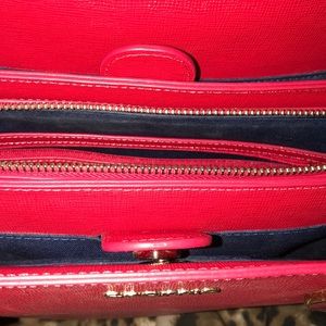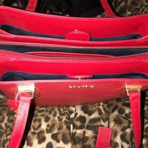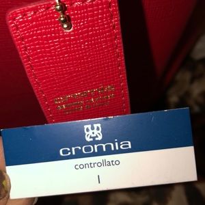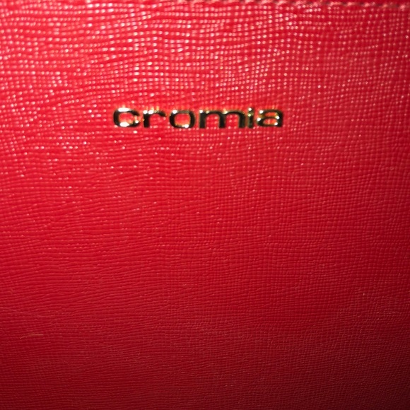 Red tote bag with gold hardware, three compartments inside bag, middle compartment has one zipper pocket and two smaller ones. Authentic Cromia, genuine leather made in Italy 💯authentic 🔥🔥🔥 measurements are 15”L x 9”D x10”W with a 8” double handle drop ⭐️