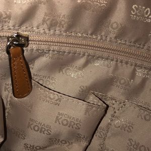 Cognac Michael Kors leather satchel large size. Silver hardware with zip closure, 5 pockets inside 1 with zipper and 4 smaller ones. Very nice genuine leather bag, gently used and in very good condition 😃👍⭐️ Nice for everyday, work or a vacation bag. 👜🛍 💯Authentic 👍💯