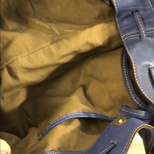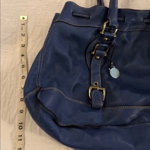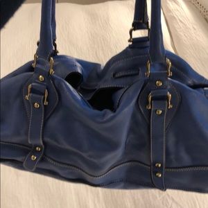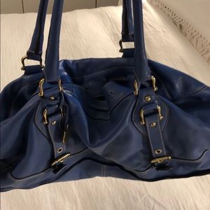 Periwinkle blue leather satchel handbag. Beautiful color and super soft but non structured so it tends to collapse a tad. I’m pretty good shape with minimal dings.