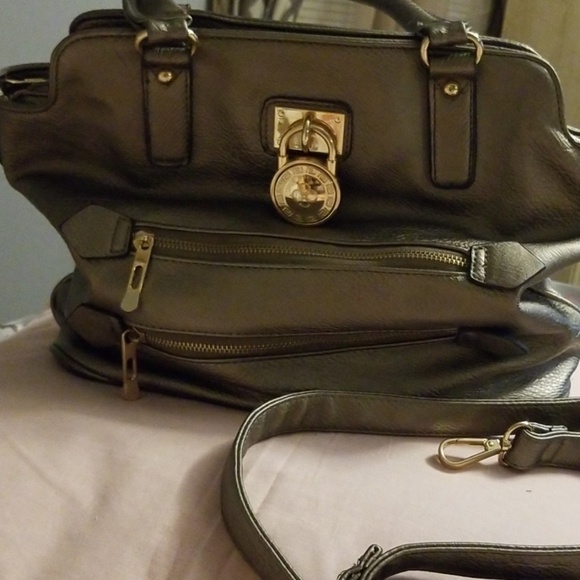 Handbag I got from a friends boutique. It has so many pockets. Mint condition and the color is gunmetal with gold hardware