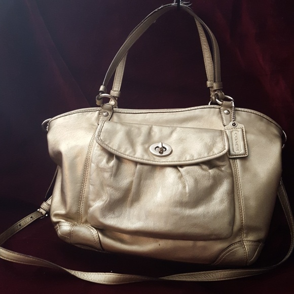 COACH shoulder bag light gold color use it's really good bag and pretty good size bag