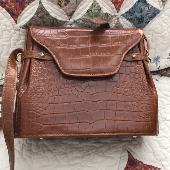 Absolutely beautiful vintage Bally tan/camel bag. Hardly used. Like new. Leather with croc design. Made in Italy. Adjustable strap for shoulder or cross body. Every attention to detail.