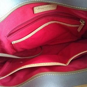 Taupe color coated cotton. Zip closure. Have shoulder strap still in plastic.