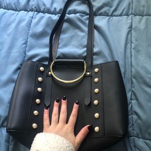 Black leather handbag from frenchescas, it’s very roomy in the inside, never used, it’s light weight with metal gold handle as well as a leather handle