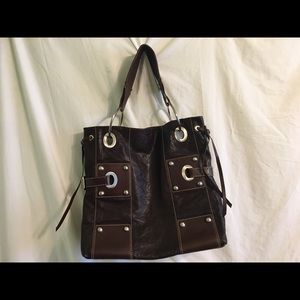 Italian leather handbag with decorative metal sides
