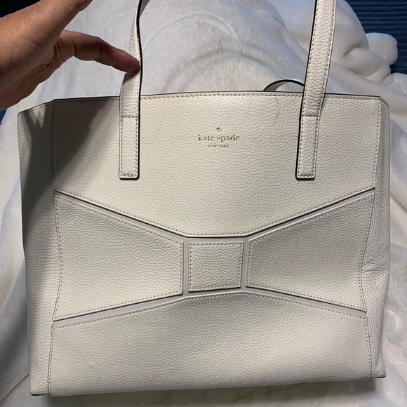 Beautiful White leather tote handbag! Lots of room. Comes with a dust bag.