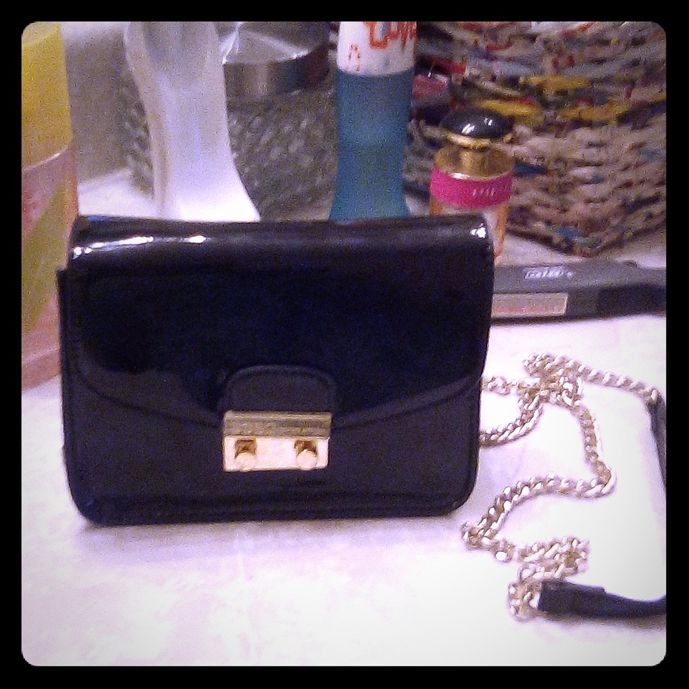 Black Patent Leather Clutch/Chain Shoulder Bag