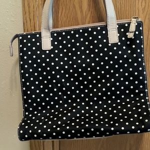 Fossil Tessa handbag. Leather and cloth. 2 exterior pockets, 3 interior. Very roomy. Holds Pixel 3 size phone. Room for a 10 in tablet.