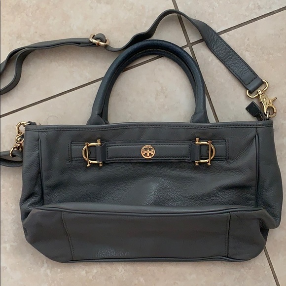 Gray handbag Equastrian style, can be worn as crossbody. Slight wear and tear along the handles as pictured.
