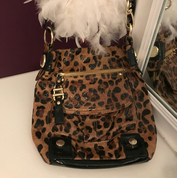 B makowsky leopard print handbag, good condition, never used, like new condition, magnetic top closure