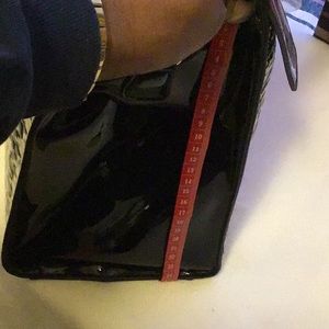 NWOT. Beautiful blk. & wht. patent leather box pursed dbl. rolled handles.