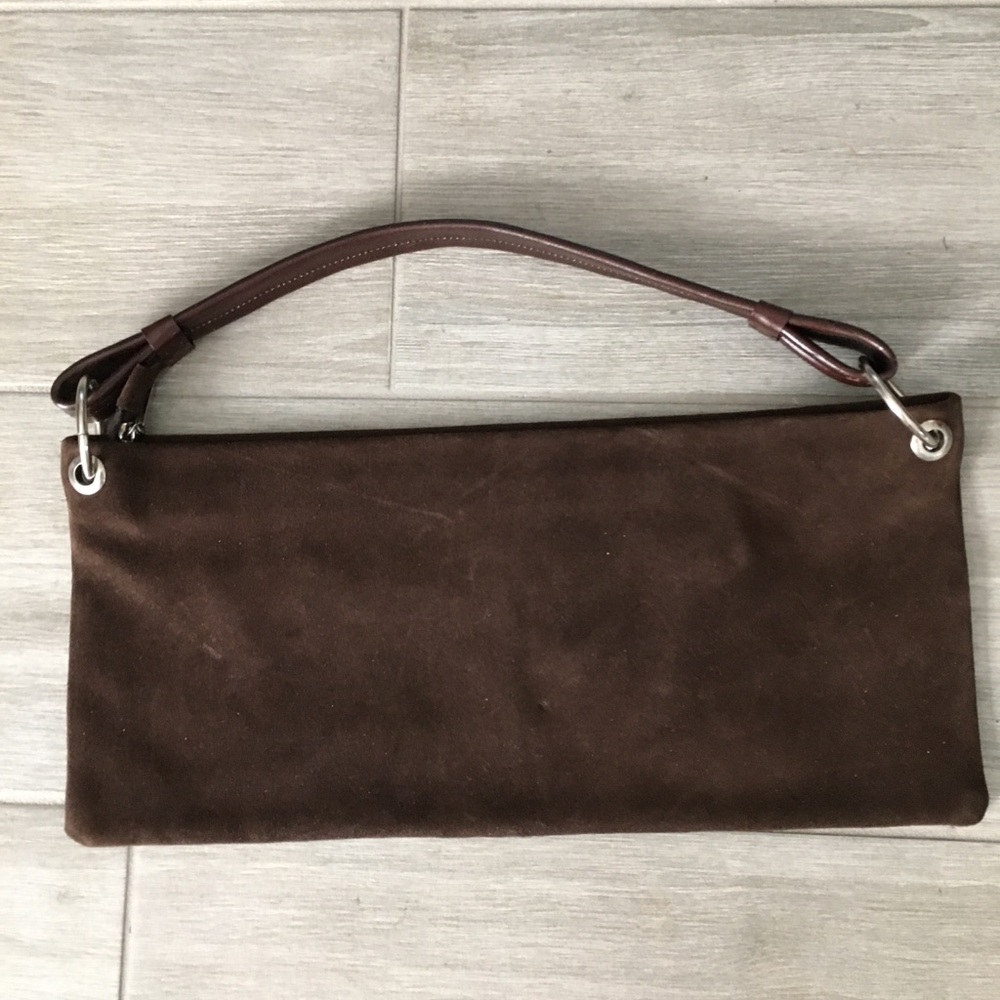 Elegant, European style suede handbag. Zilber hardware.
