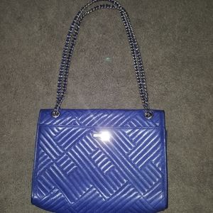 Aunthentic Rebecca Minkoff Italian Leather Handbag with Chain Handle with leather inlaid in the handle. Comes with matching storage bag.