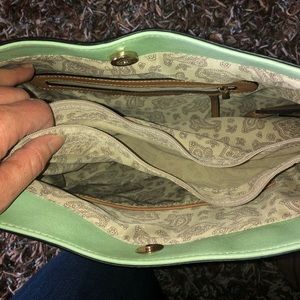 Simply Noelle handbag. Hobo style, fits over the shoulder comfortably but also has a detachable, adjustable strap. Outside zip pocket, 3 compartments inside with one being zippered. Back wall has zipper pocket & other side has 1 slip pocket. Smoke free home. Like new.