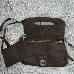 Nylon leopard dark grey cross body bag with multi compartments