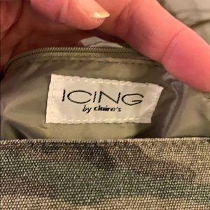 Silver rings and studs on handbag