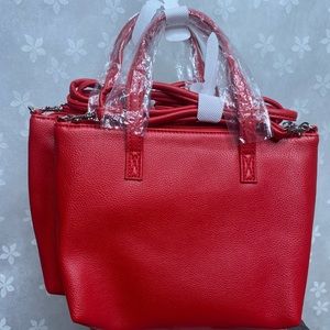 Canvas handbag can be cross body also. I can bundle them or sell separate. Can be used for children or adults. Red faux leather with gold hardware. NWT I will take additional pictures if interested.
