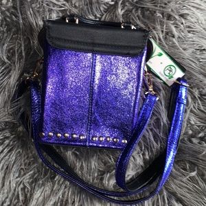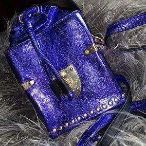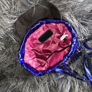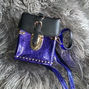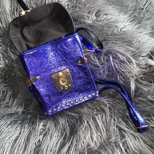 Treasure box here for the taking! Yes, snag this cute little box tote, vegan purple trimmed in gold. What an amazing used purchase, this item is light weighted and ready to be shipped to you.