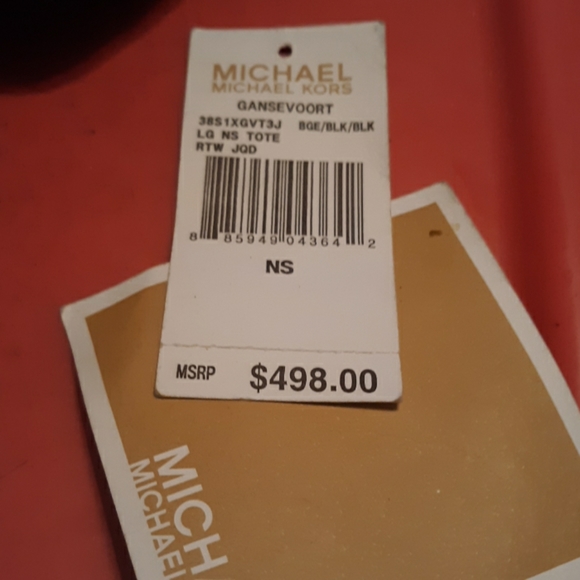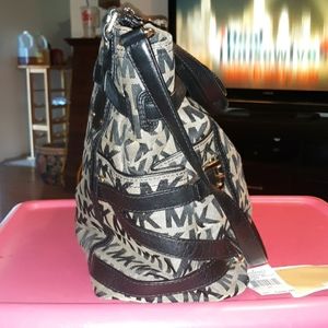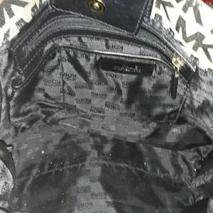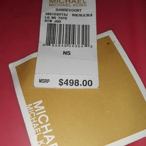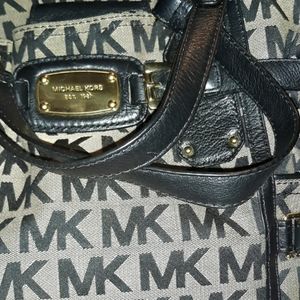 X large Micheal Kors black laether and tan canvas MK logo in perfect shape. Handles excellent and bottom in perfect shape.