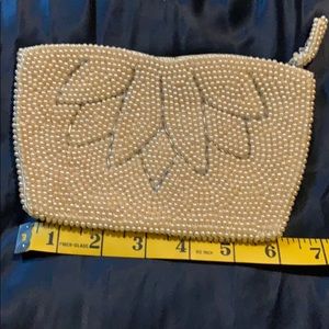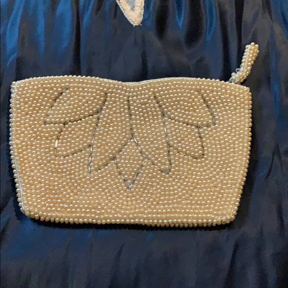Vintage Beaded clutch with lotus flower design. Fully lined and clean. Has some missing beads on zipper flap. From Japan.